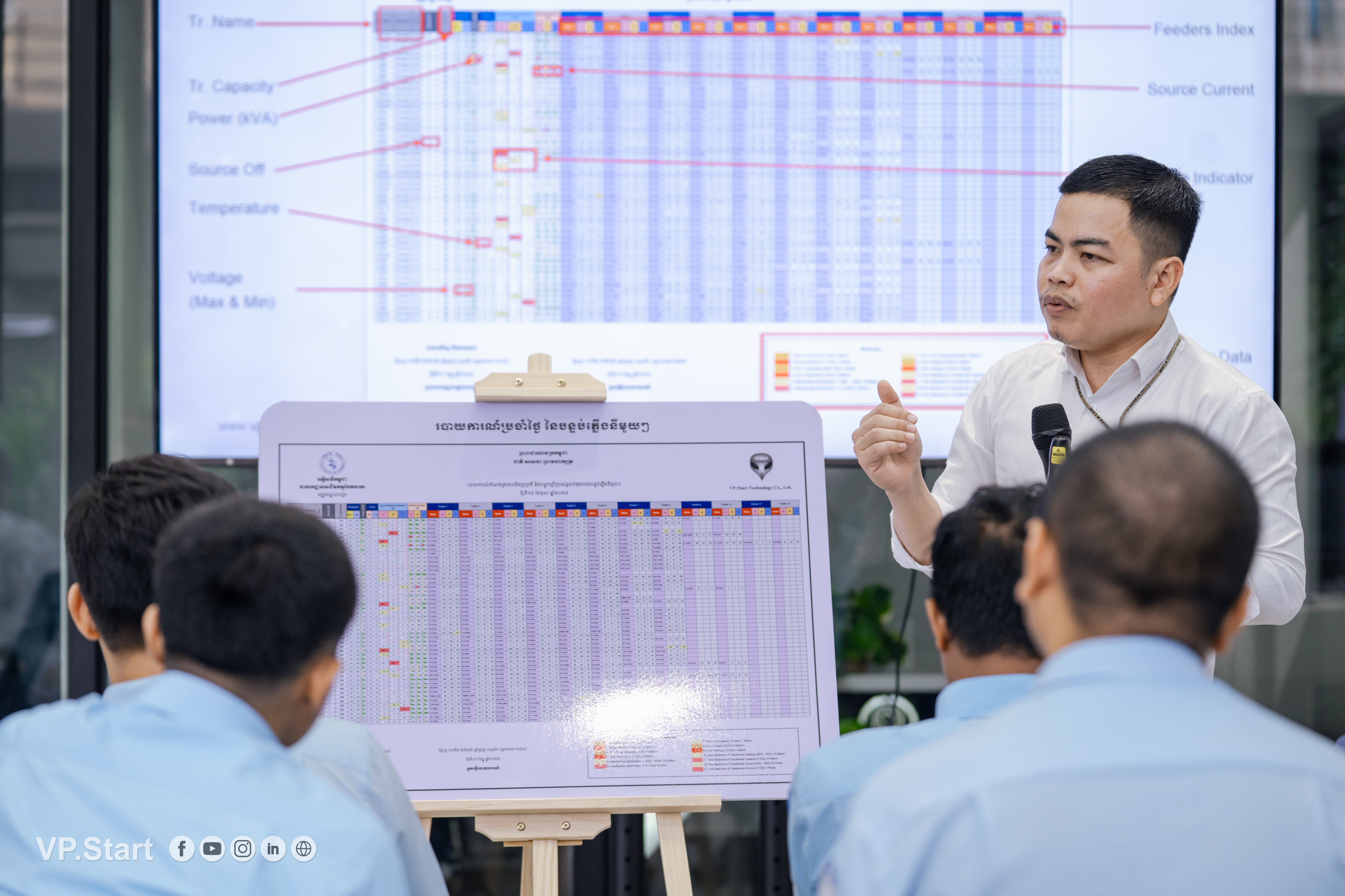 VP.Start organized a workshop on data analysis and understanding the meaning of each data point on the LMS for EDC engineers. The LMS is a new-generation SCADA system designed to manage and monitor electricity distribution in LVDB distribution rooms. VP.Start’s solution is built on four key principles: easy upgrading and maintenance, the fast installation with existing electrical equipment, low investment cost, and an IoT-driven approach that focuses on data collection and real-time data updates to enhance user's experiences.